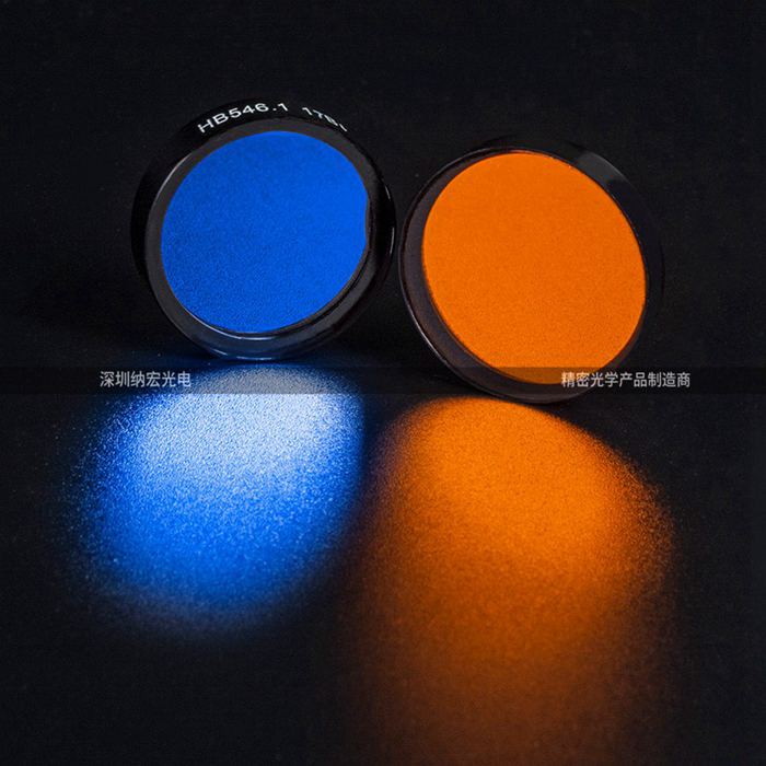 濾光片是塑料或玻璃片再加入特種染料做成的,紅色濾光片只能讓紅光通過,如此類推。玻璃片的透射率原本與空氣差不多,所有有色光都可以通過,所以是透明的,但是染了染料后,分子結構變化,折射率也發生變化,對某些色光的通過就有變化了。比如一束白光通過藍色濾光片,射出的是一束藍光,而綠光、紅光極少,大多數被濾光片吸收了。